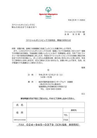この度、スペシャルオリンピックス日本・福島についての説明会(SOとは? 福島での活動の状況報告、今後皆様にお願いしたいことなど)を開催致します。